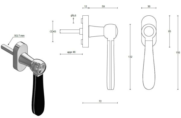 De maten van deze raamsluiting staan in de afbeelding.