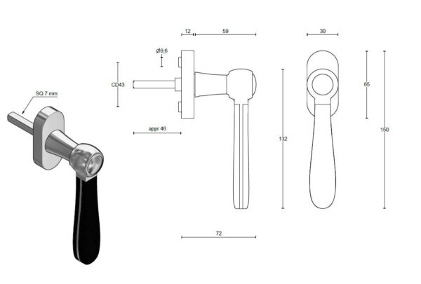 Dit is een draaikiepgarnituur. De raamsluiting is van Formani uit de serie BOSCO. De ontweper is LÁZARO ROSA-VIOLÁN. Het materiaal is mat rvs/mat zwart.