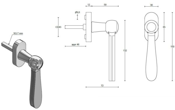 Dit is een draaikiepgarnituur. De raamsluiting is van Formani uit de serie BOSCO. De ontweper is LÁZARO ROSA-VIOLÁN. Het materiaal is messing ongelakt/Carrara marmer.