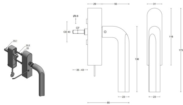Dit is een afsluitbare draaikiepsluiting. Deze kunt u monteren op draaikiep ramen en deuren. (kiep kantel) De raamsluiting is van Formani uit de serie ECLIPSE, van de designer David Rockwell.