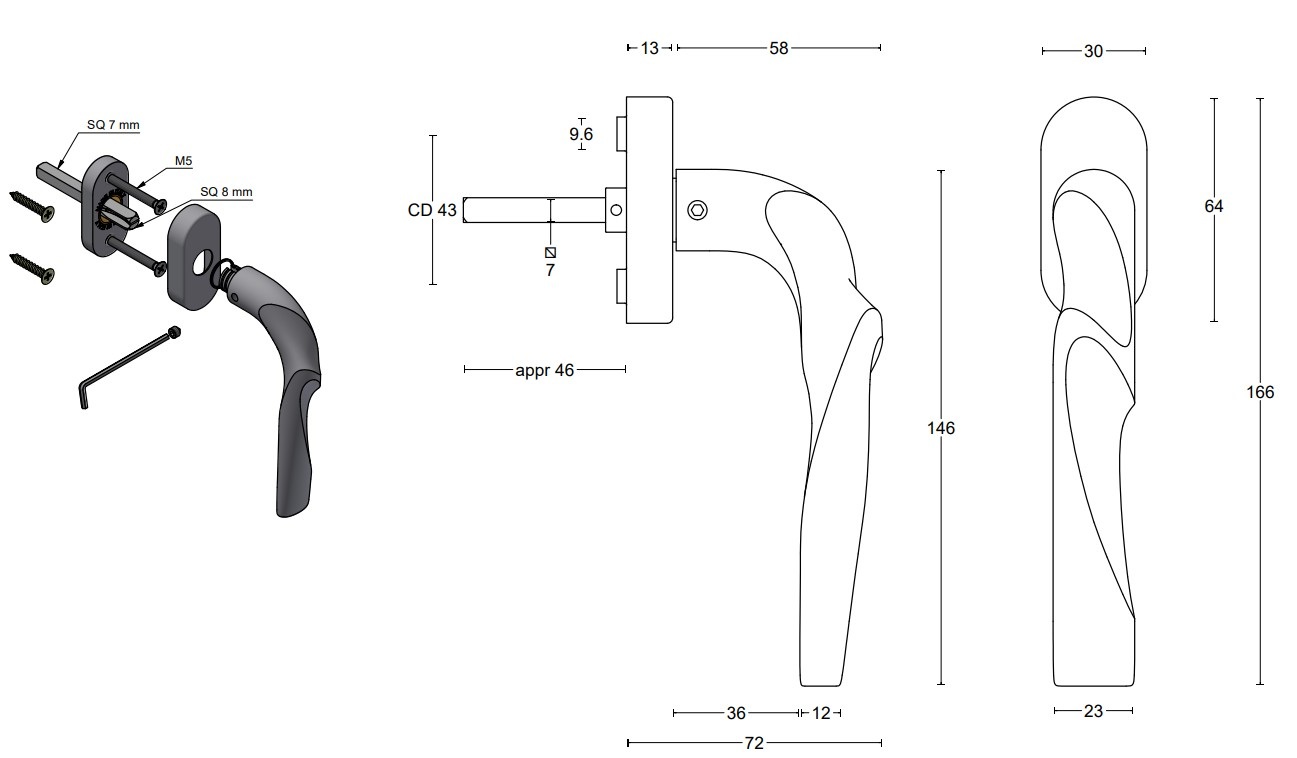 Dit is een draaikiepsluiting. Deze kunt u monteren op draaikiep ramen en deuren. (kiep kantel) De raamsluiting is van Formani uit de serie ELEEZ, van de designer Zaha Hadid.