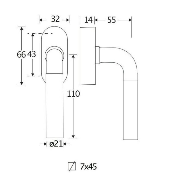 De maten van deze raamsluiting staan in de afbeelding