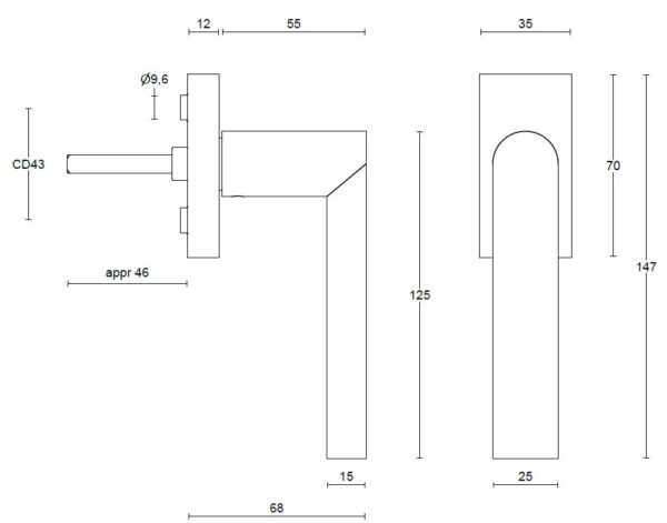 De maten van deze raamsluiting staan in de afbeelding.