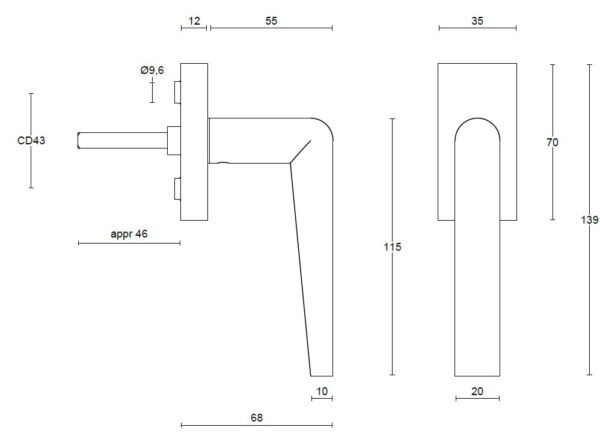 De maten van deze raamsluiting staan in de afbeelding.