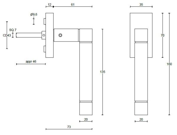 Dit is een draaikiepgarnituur. De raamsluiting is van Formani uit de serie SQUARE. De ontwerper van deze raamsluiting Jan Des Bouvrie.