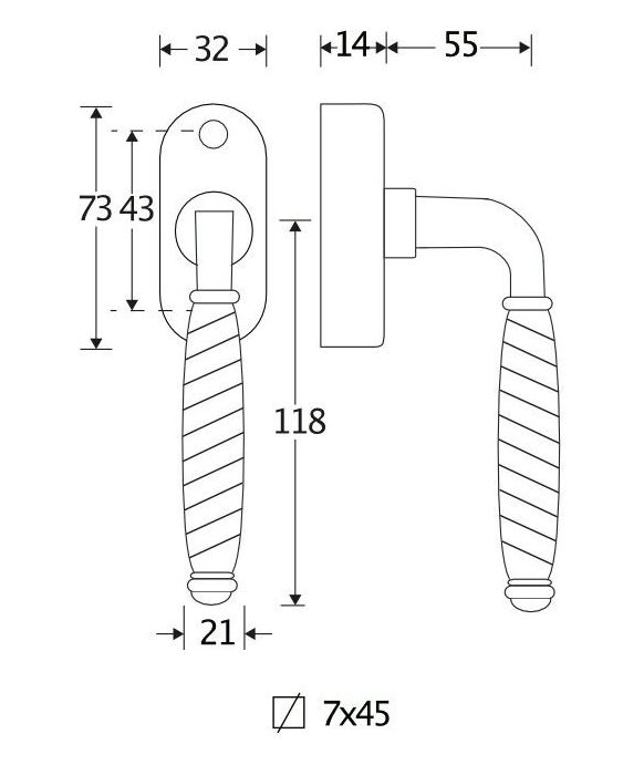 De maten van deze raamsluiting staan in de afbeelding.