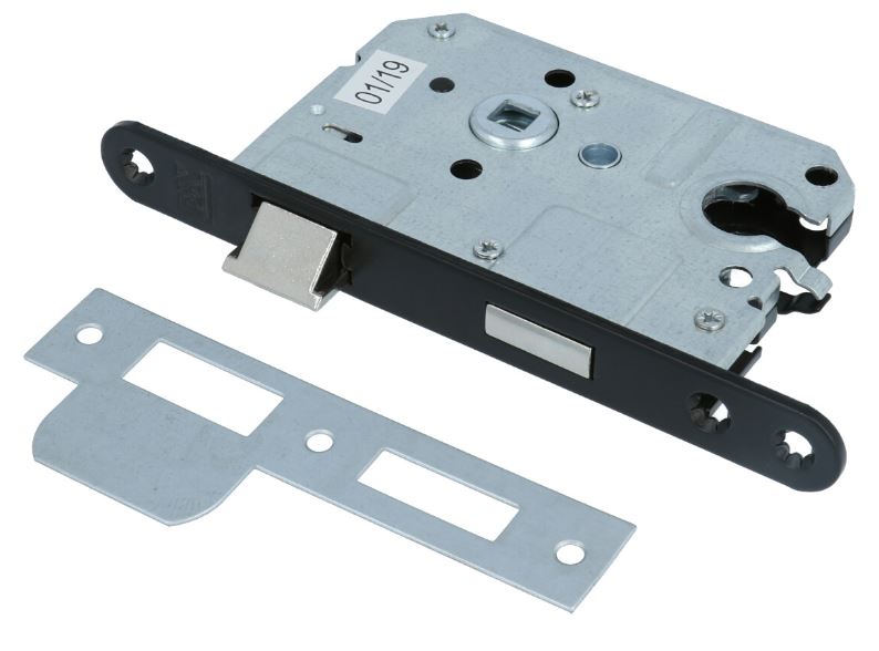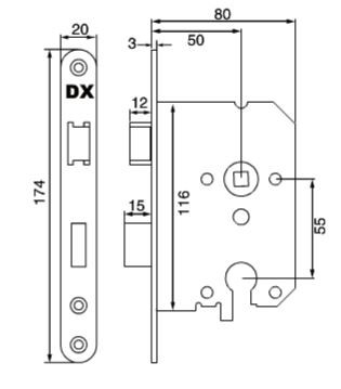 Dit cilinder insteekslot heeft een doornmaat van 50 mm. Dit is de afstand van het hart van het profielcilindergat tot de voorkant van de voorplaat van het slot. De maat van het hart van het sleutelgat tot het hart van het krukgat is 55 mm. Het cilinder insteekslot wordt geleverd inclusief rechthoekige sluitplaat. De afgeronde voorplaat is zwart gelakt. De maten van deze plaat zijn 174 x 20 mm.
