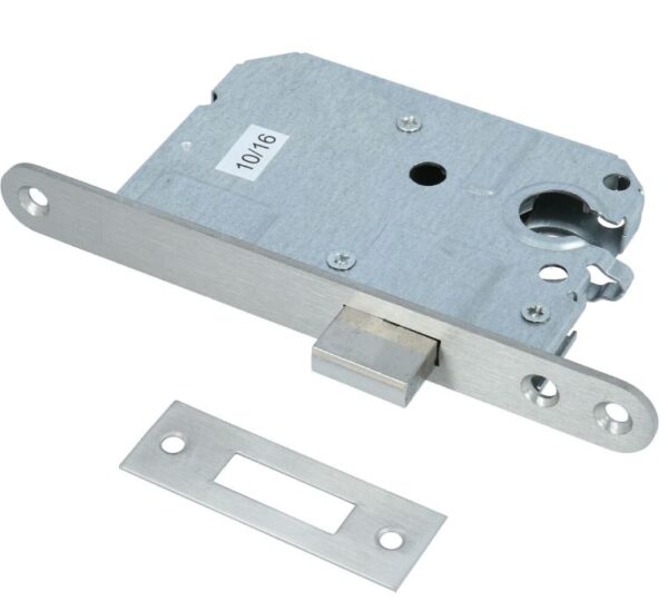 Dit kastslot is geschikt voor een eurocilinder en heeft een doornmaat van 50 mm. Dit is de afstand van het hart van het deurklinkgat tot de voorkant van de voorplaat van het slot. Het kastslot wordt geleverd inclusief rechthoekige sluitplaat. De afgeronde voorplaat is rvs. De maten van deze voorplaat zijn 174 x 20 mm.Â