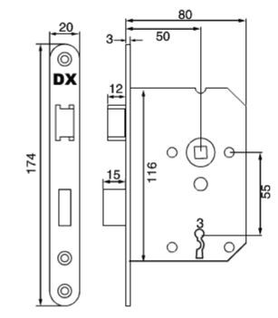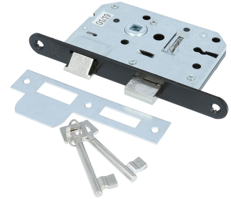 Dit dag en nacht insteekslot heeft een doornmaat van 50 mm. Dit is de afstand van het hart van het sleutelgat tot de voorkant van de voorplaat van het slot. De maat van het hart van het sleutelgat tot het hart van het krukgat is 56 mm. Het dag en nachtslot wordt geleverd inclusief 2 sleutels en een rechthoekige sluitplaat. De afgeronde voorplaat is zwart gelakt. De maten van deze plaat zijn 174 x 20 mm.