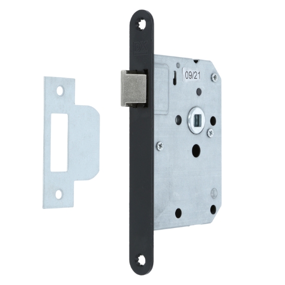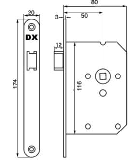 Dit loopslot heeft een doornmaat van 50 mm. Dit is de afstand van het hart van het deurklinkgat tot de voorkant van de voorplaat van het slot. Het loopslot wordt geleverd inclusief rechthoekige sluitplaat verzinkt. De afgeronde voorplaat is zwart gelakt. De maten van deze plaat zijn 174 x 20 mm.
