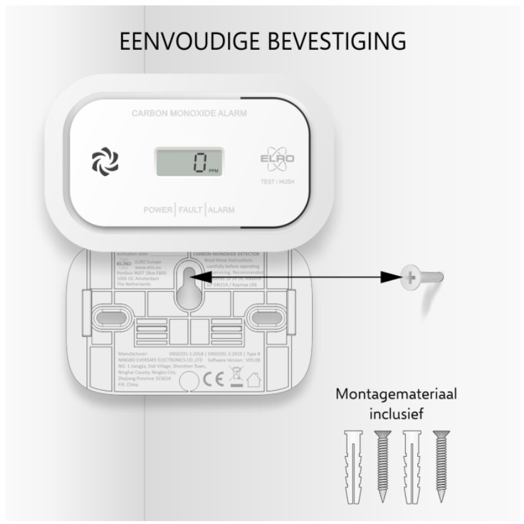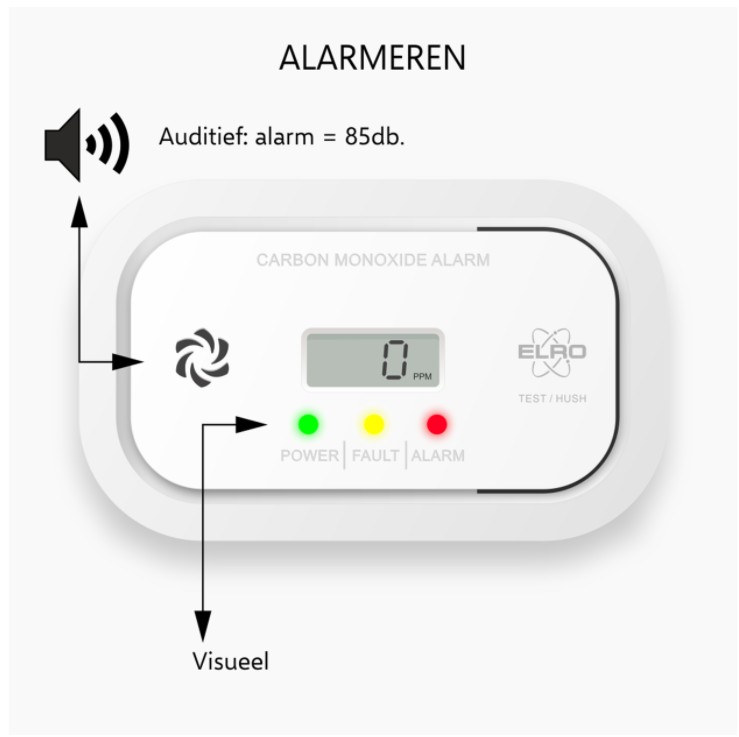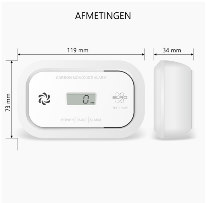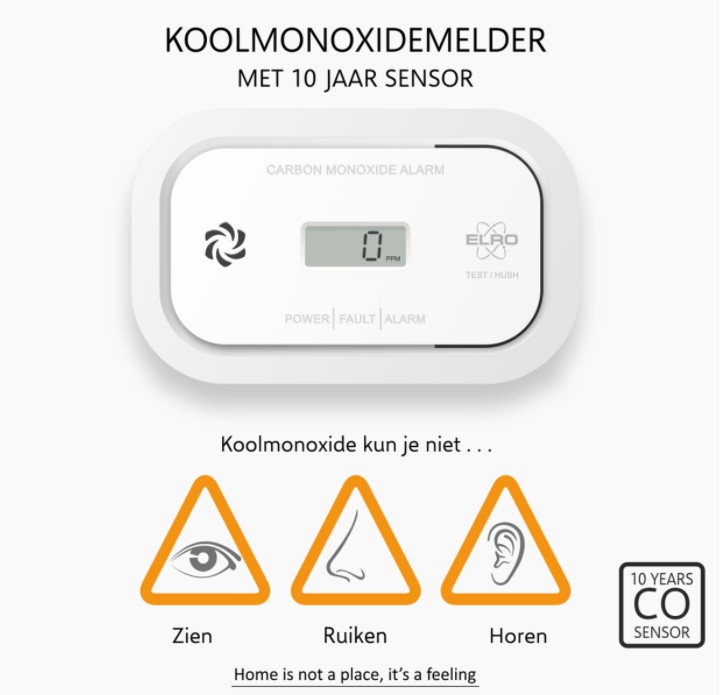 De ELRO FC5003 koolmonoxidemelder zorgt ervoor dat je op tijd gewaarschuwd wordt bij het ontstaan van het giftige koolmonoxidegas. Dit gas is reukloos en onzichtbaar waardoor het zonder melder niet op te sporen is. Koolmonoxide ontstaat door een onvolledige verbranding en kan voorkomen bij een schoorsteen, geiser CV-ketel. Deze melder van ELRO beschikt over een hoge kwaliteit elektrochemische sensor welke constant de concentratie koolmonoxide in de lucht meet. Op het display wordt de concentratie van CO weergegeven. Bij een te hoge concentratie geeft de melder een hard alarm van 85dB. De ELRO FC5003 voldoet aan de Europese norm EN 50291-1:2010.