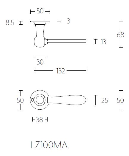 Enkele deurklink links BOSCO LZ100 op rozet mat rvs/marmer