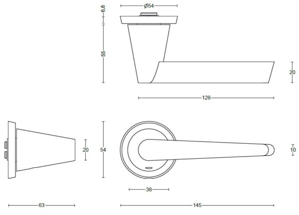 Enkele deurklink rechts CONE OH101 op rozet PVD mat zwart