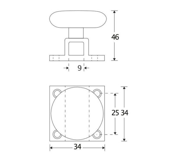Espagnolet trekknop Elegant voor vierkante stang mat chroom