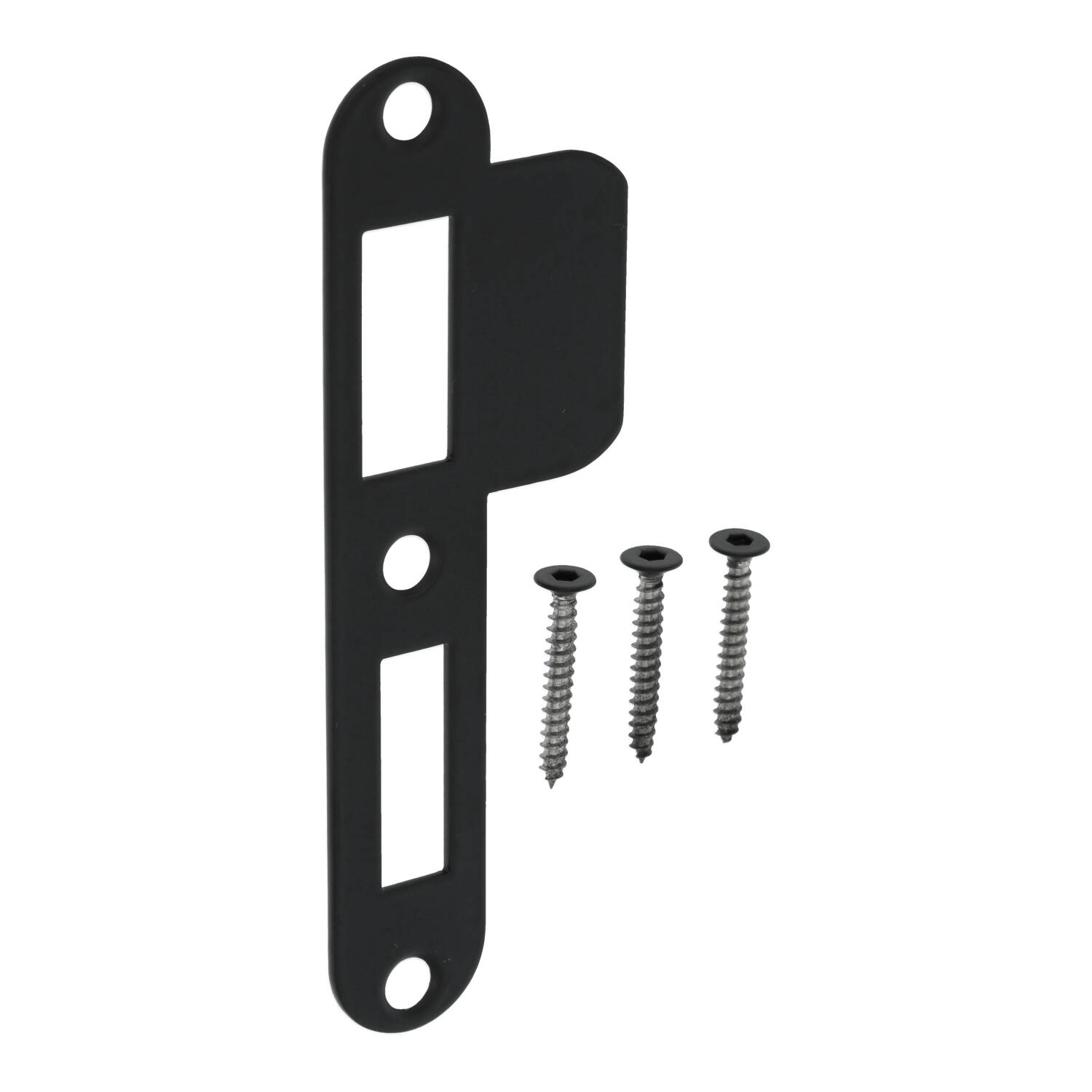 Afgeronde sluitplaat PVD mat zwart (gunmetal) voor de klaviersloten/cilindersloten/badkamersloten van FORMANI. Deze sluitplaat komt uit de serie BASICS van Formani. De sluitplaat heeft dezelfde finish als al het deurbeslag van FORMANI in de finish mat zwart oftewel gunmetal! Deze sluitplaat wordt standaard geleverd inclusief houtschroeven in dezelfde finish.