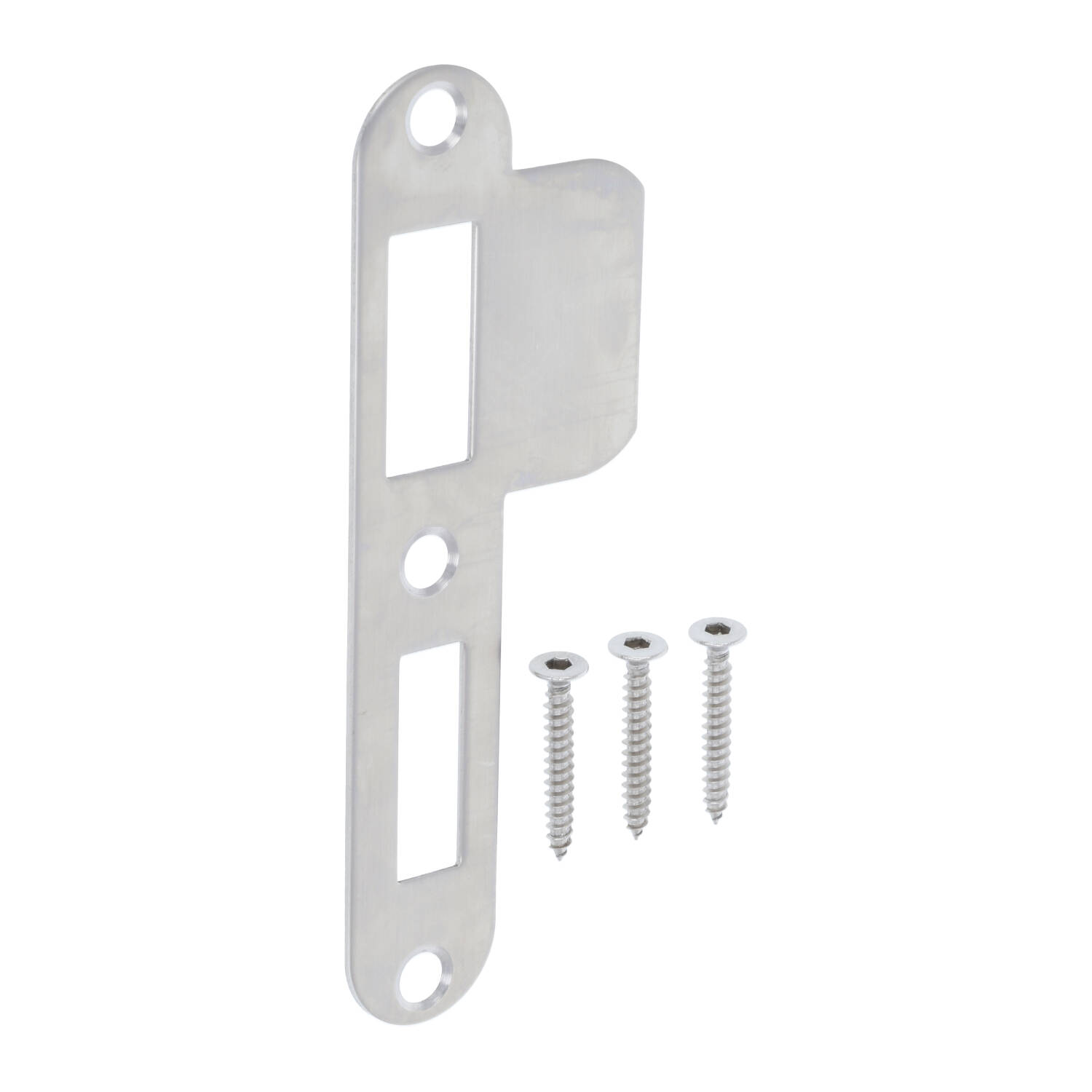 Afgeronde sluitplaat RVS voor de klaviersloten/cilindersloten/badkamersloten van FORMANI. Deze sluitplaat komt uit de serie BASICS van Formani. De sluitplaat heeft dezelfde finish als al het deurbeslag van FORMANI in de finish rvs! Deze sluitplaat wordt standaard geleverd inclusief houtschroeven in dezelfde finish.