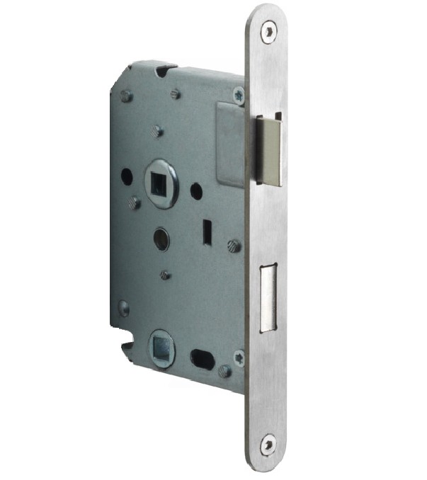 Dit hoogwaardige badkamer-/toiletslot is uitgevoerd in een elegante rvs afwerking en beschikt over een afgeronde voorplaat. Dit slot komt uit de serie BASICS van Formani en heeft een doornmaat van 50 mm. Dit is de afstand van het hart van het deurklinkgat tot de voorkant van de voorplaat van het slot. Het slot heeft een toilet-/badkamer uitvoering op 63 mm. Het wordt geleverd inclusief rechthoekige rvs sluitplaat (zie afbeelding 3). De afgeronde voorplaat van het slot is van rvs. Deze finish is perfect te combineren bij al het deurbeslag van FORMANI in de finish rvs! (zie gerelateerde producten)