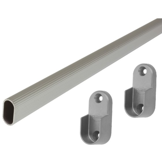 Garderobestang 1 meter met dragers ovaal geribbeld zilver