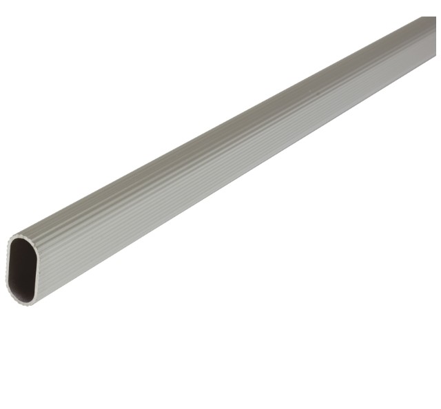 Deze ovale garderobestang van 1 meter is gemaakt van aluminium. De ovale vorm biedt meer stevigheid en stabiliteit dan een ronde buis. Het geribbelde oppervlak verbetert de grip en voorkomt wegglijden van de hangers. Voor meer stevigheid, zie gerelateerde producten voor 2 extra ophangbeugels.