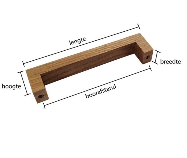 Deze design greep aalborg (bench) is gemaakt vanuit één stuk gelakt eikenhout. Deze houten greep is 32mm hoog en 20mm breed en heeft een lengte van 172mm.
