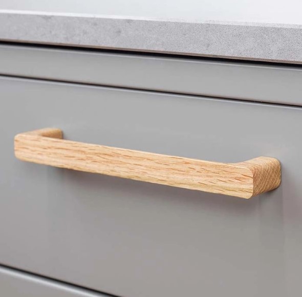 Deze mooie, houten design greep Nysted is vervaardigd uit één stuk eikenhout. Dat maakt ieder exemplaar uniek met een eigen nervenpatroon. De grepen worden vervolgens afgewerkt met een sterke, matte lak die beschermt tegen beschadigingen. De montage van deze moderne, strakke greep is erg gemakkelijk. Je bevestigt ze eenvoudig met M4-schroeven. Deze houten greep is 26mm hoog en 15.5mm breed en heeft een lengte van 170mm.