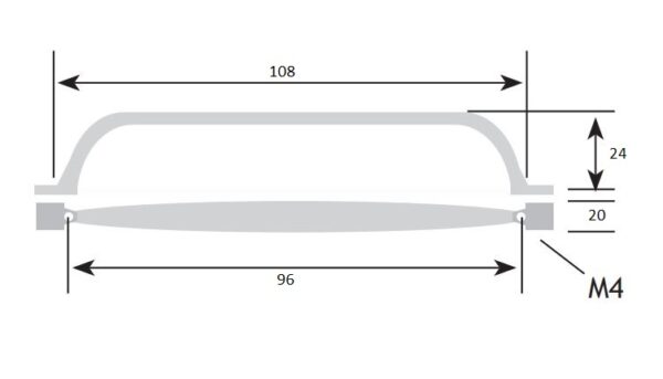 De bevestigingsmaat van deze greep is 96 mm. De totale breedte van deze meubelgreep is 130 mm. De hoogte van de greep is 23 mm.