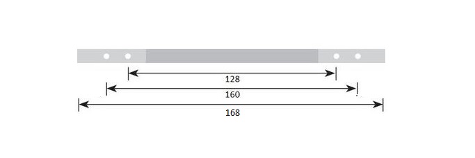 De h.o.h. maat van de schroefgaten is 128 & 160 mm. De hoogte van de greep is 35 mm. De totale lengte is 168 mm.