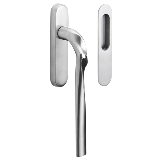 Dit schuifdeurbeslag is van FORMANI uit de serie ELEEZ. Deze is ontworpen door Zaha Hadid. Dit is een massieve set inclusief een schuifdeurkom voor de buitenzijde.
