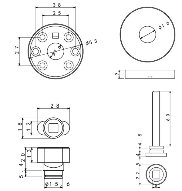 De stift maat van de wc-sluiting is vierkant 8 mm.