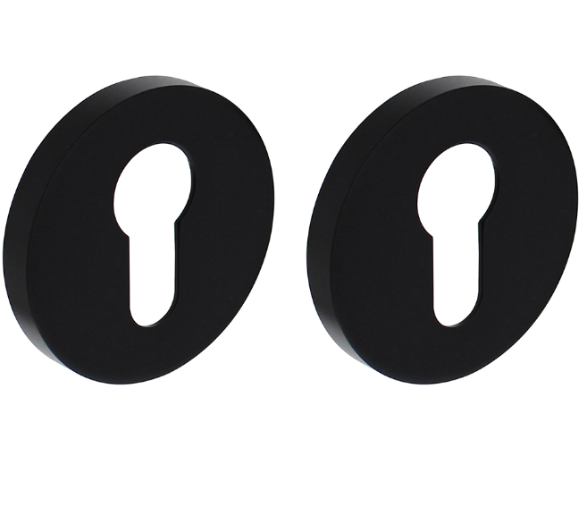 Deze set ronde rozetten met profielcilindergat zijn uitgevoerd in aluminium en voorzien van een zwarte coating. De rozetten hebben een diameter van Ø55 mm en zijn voorzien van nokken, waardoor ze beter op hun plek worden gehouden. Dit product wordt per paar geleverd inclusief bevestigingsmateriaal voor montage.
