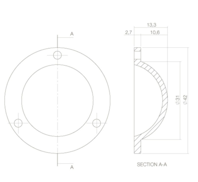 Intersteel afdekplaatje tbv bout voordeurknop messing getrommeld