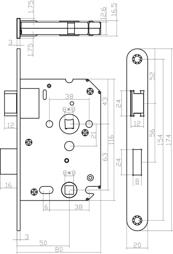 Dit slot wordt geleverd in toilet-/badkamer uitvoering op 63 mm met 8mm stift. De sloten van Intersteel en de bijbehorende sluitplaten zijn verkrijgbaar in diverse uitvoeringen en draairichtingen. De doornmaat van het slot is 50 mm en wordt geleverd inclusief sluitplaat en voorplaat. De witte voorplaat heeft een afmeting van 174 x 20 mm (hxb). U kunt dezelfde inbouw- en freesmaten gebruiken als een standaard woningslot. De dagschoot van dit slot is omwisselbaar; dat wil zeggen dat deze voor zowel een linksdraaiende deur als een rechtsdraaiende deur geschikt is.