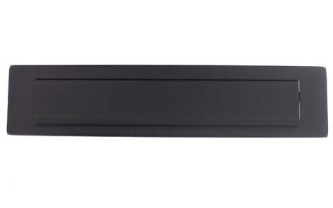 Roestvast stalen rechthoekige brievenbus in een mat zwarte uitvoering. Deze naar buiten draaiende briefplaat is voorzien van een regenrand en is bedoeld voor horizontale plaatsing. Ook voldoet deze briefplaat aan de NEN norm voor de Nederlandse Postwet, waarin richtlijnen zijn bepaald voor de afmetingen van brievengleuven en brievenbussen.