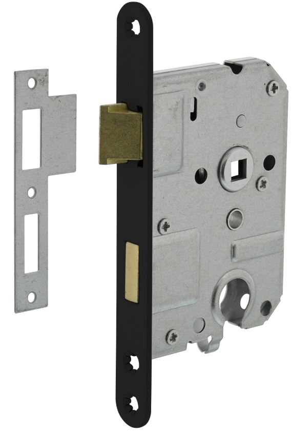 Dit slot is afsluitbaar met een profielcilindergat maat op 55 mm. De sloten van Intersteel en de bijbehorende sluitplaten zijn verkrijgbaar in diverse uitvoeringen en draairichtingen. De doornmaat van dit slot is 50 mm en wordt geleverd inclusief sluitplaat en voorplaat. De zwarte voorplaat heeft een afmeting van 175 x 20 mm (hxb). U kunt dezelfde inbouw- en freesmaten gebruiken als een standaard woningslot. De dagschoot van dit slot is omwisselbaar; dat wil zeggen dat deze voor zowel een linksdraaiende deur als een rechtsdraaiende deur geschikt is.