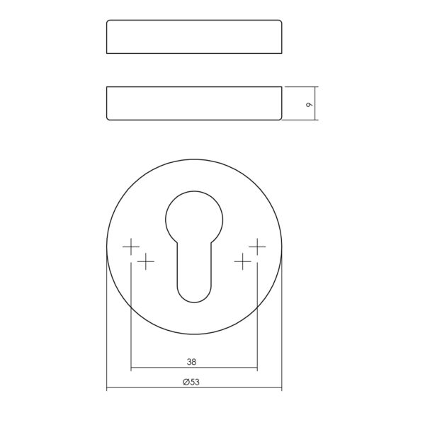 Intersteel cilinderrozetten verdekt ø53x9mm rvs getrommeld