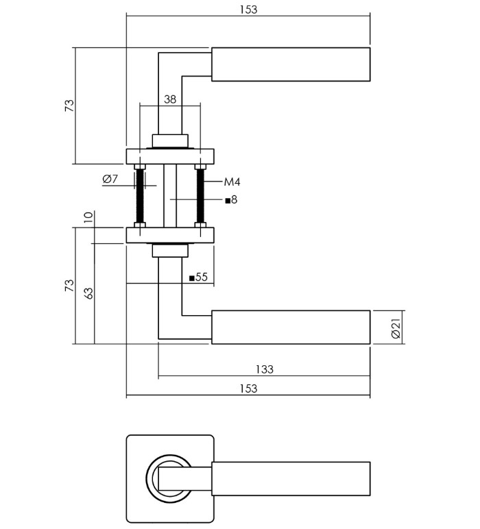 Deze deurbeslag set voor toilet-/badkamerdeuren bestaat uit een wc-slot met een bijpassende deurklink en wc-sluiting. Het slot wordt geleverd in toilet-/badkamer uitvoering op 63 mm en met een 8 mm stift. De doornmaat van dit slot is 50 mm en wordt geleverd inclusief sluitplaat en eenzwarte afgeronde voorplaat. U kunt dezelfde inbouw- en freesmaten gebruiken als een standaard woningslot. De dagschoot van dit slot is omwisselbaar. Dat wil zeggen dat deze voor zowel naar linksdraaiende als rechtsdraaiende deuren geschikt is. Deurklink Bau-stil op vierkant rozet is uitgevoerd in zamak en is naderhand van een mat zwarte coating voorzien. De rozet heeft een afmeting van 55x55x10 mm en is voorzien van nokken, waardoor de kruk beter op zijn plek wordt gehouden. Deze deurklink is geschikt voor een deurdikte van 38 – 42 mm en wordt per paar geleverd inclusief bijpassende wc-sluiting en bevestigingsmateriaal.