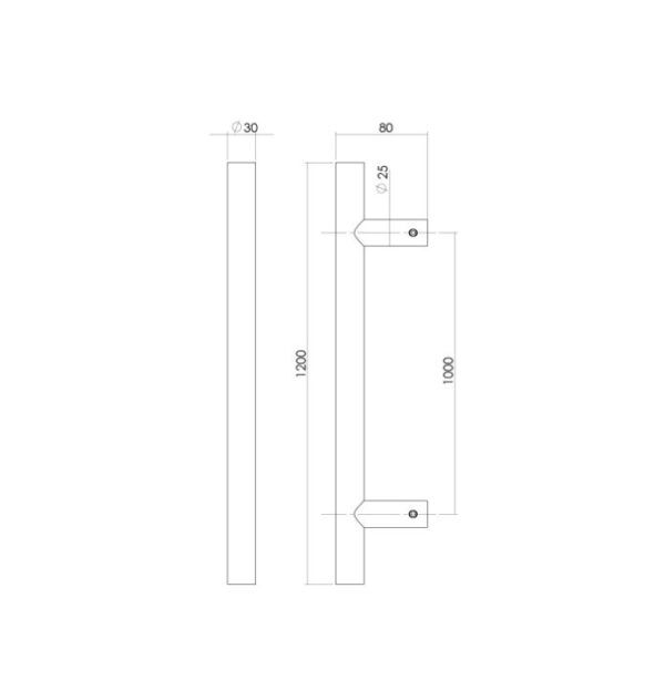 Intersteel deurgreep T-vorm 1200x80x30 HoH 1000 mm rvs