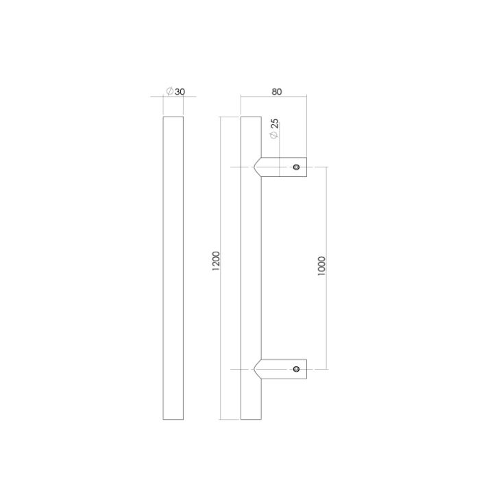 Intersteel deurgreep T-vorm 1200x80x30 HoH 1000 mm rvs