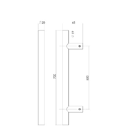 Intersteel deurgreep T-vorm 700x65x20 HoH 500 mm rvs