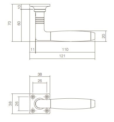 - De rozet heeft een afmeting van 38x38x6 mm (hxbxd)