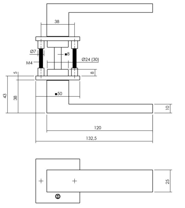 Deurklink Amsterdam op vierkante rozet is uitgevoerd in rvs en voorzien van een mat zwarte coating. Mat zwart is de trendkleur van het moment en is goed te combineren met veel kleuren en woonstijlen. Het strakke, hoekige design van deurklink Amsterdam combineert goed met de rozet. Deze vierkante rozet heeft een afmeting van 50x50x5 mm en is voorzien van nokken, waardoor hij beter op zijn plek blijft zitten. De deurklink wordt per paar geleverd inclusief bevestigingsmateriaal voor montage.