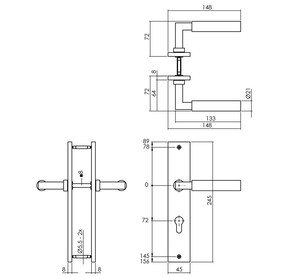 | Deurdikte: | Geschikt voor een deurdikte van 38 – 42 mm |