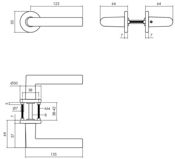 Intersteel deurklink Broome op rozet ø50×7 mm + 7mm nokken aluminium F1