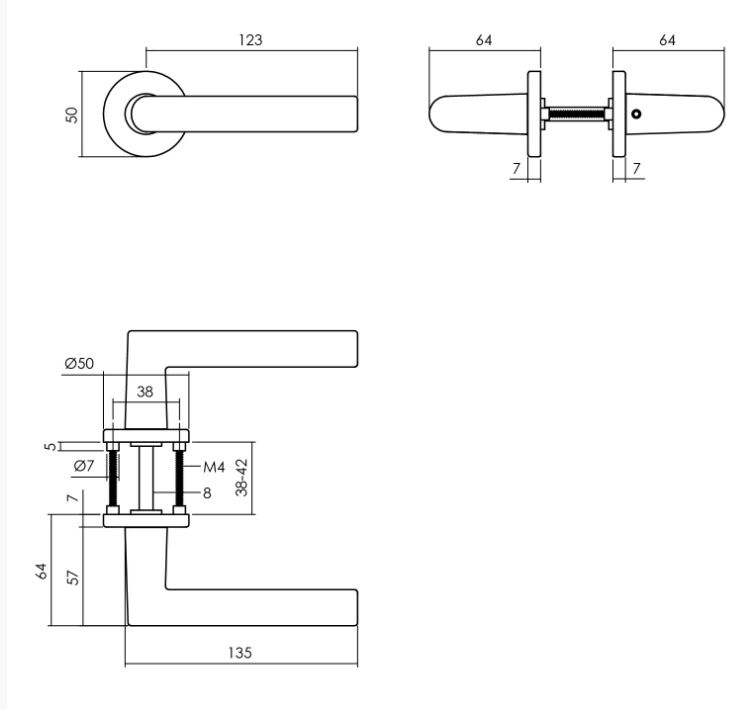 Intersteel deurklink Broome op rozet ø50x7 mm + 7mm nokken zwart