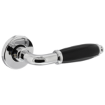 Deurklink Courgette kenmerkt zich door een stijlvolle en bijzondere vormgeving. Deze deurklink op rond rozet is uitgevoerd in chroom en naderhand gepolijst, waardoor het een glanzende uitstraling krijgt. Door de combinatie met een zwarte greep, heeft deze kruk een bijzondere uitstraling. Deze deurklink wordt per paar geleverd inclusief verdekt rozet en bevestigingsmateriaal.