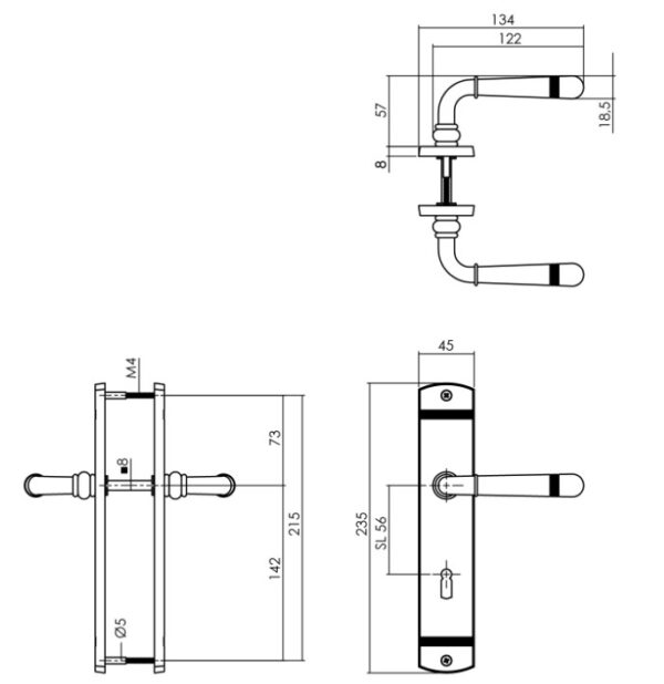 Deurklink Helena op een rechthoekig schild is uitgevoerd in zamak en naderhand voorzien van een trendy zwarte coating. Het design van deurklink Helena kenmerkt zich door de klassieke en slanke vormgeving. Deze deurklink op schild met een sleutelgat maat 56 mm is voorzien van schroefgaten. Daarnaast is het schild geveerd zodat de deurklink na gebruik weer terugveert naar zijn horizontale positie. Dit product wordt per paar geleverd inclusief bevestigingsmateriaal voor montage.