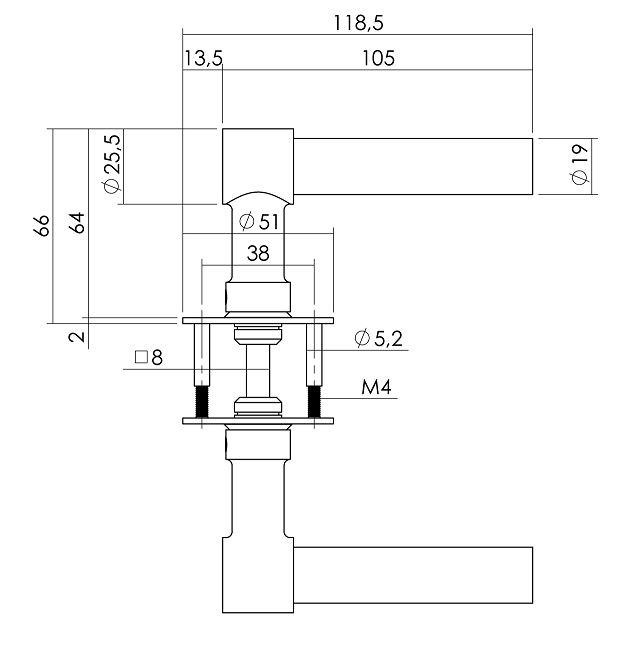 Intersteel deurklink L/L-model recht + ronde platte rozet 50x2mm rvs