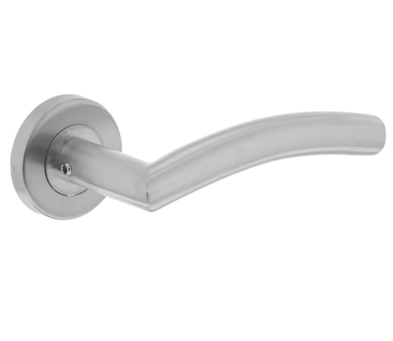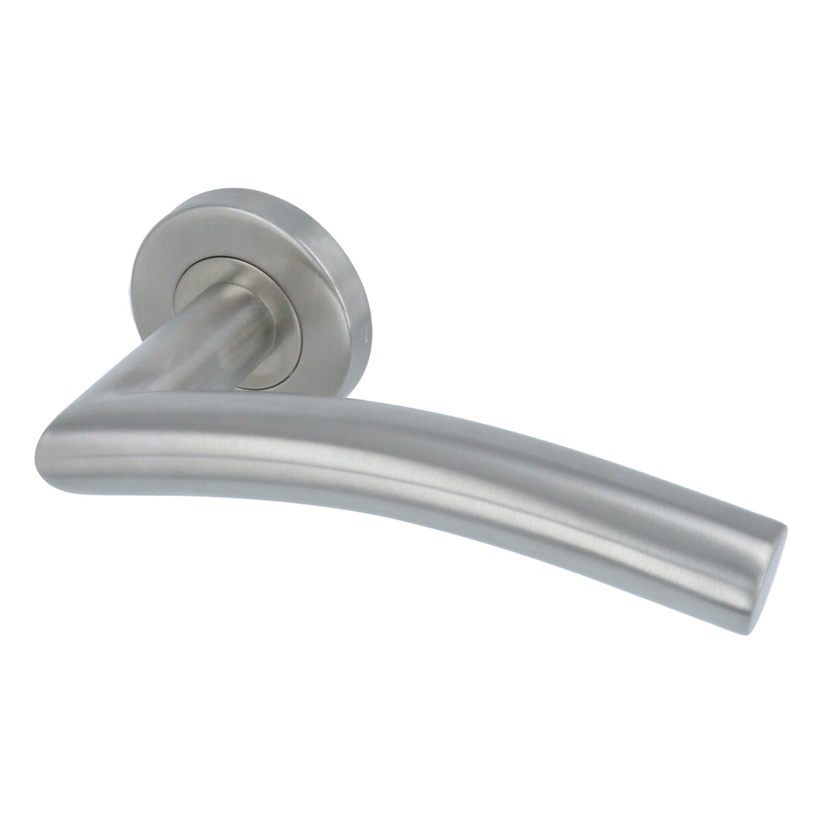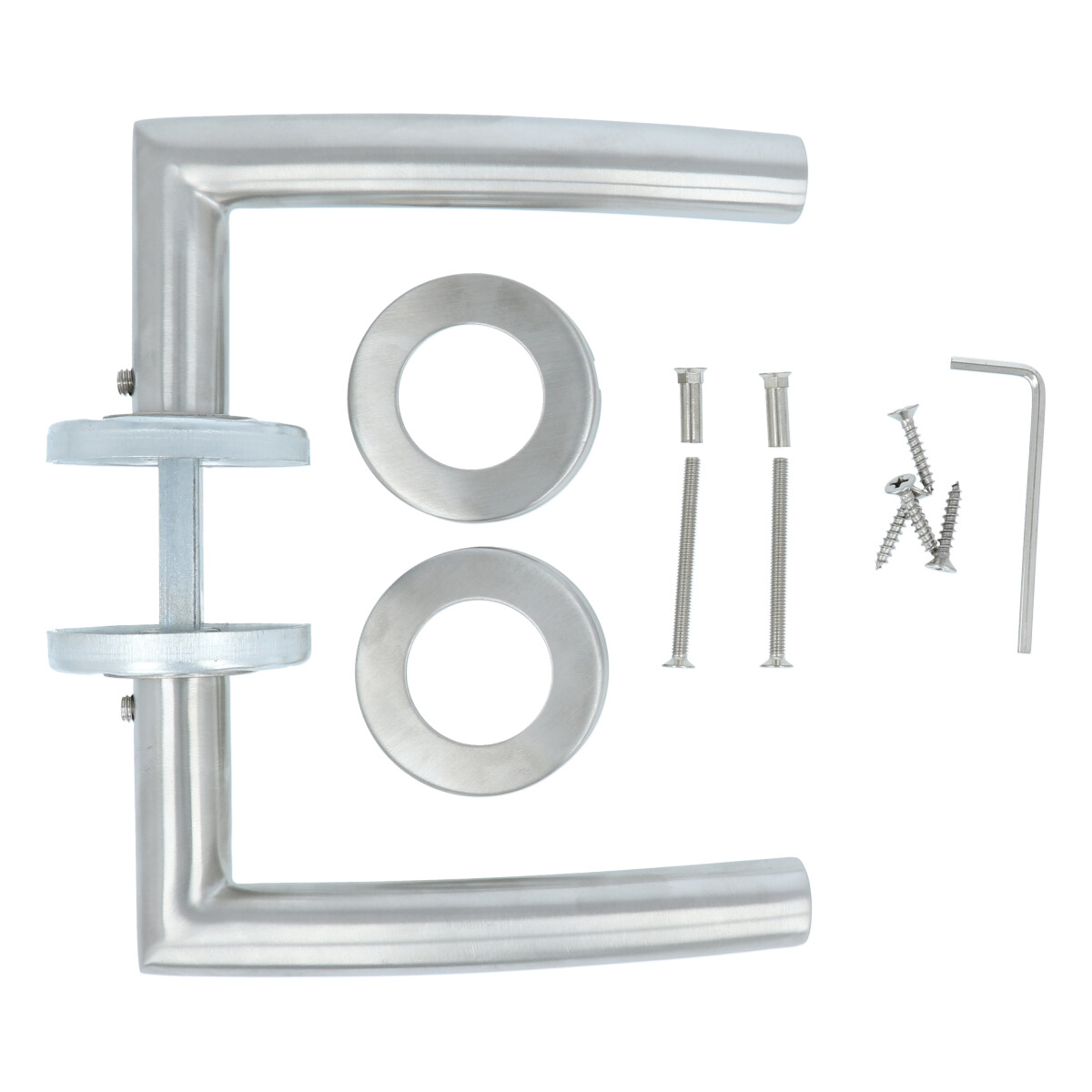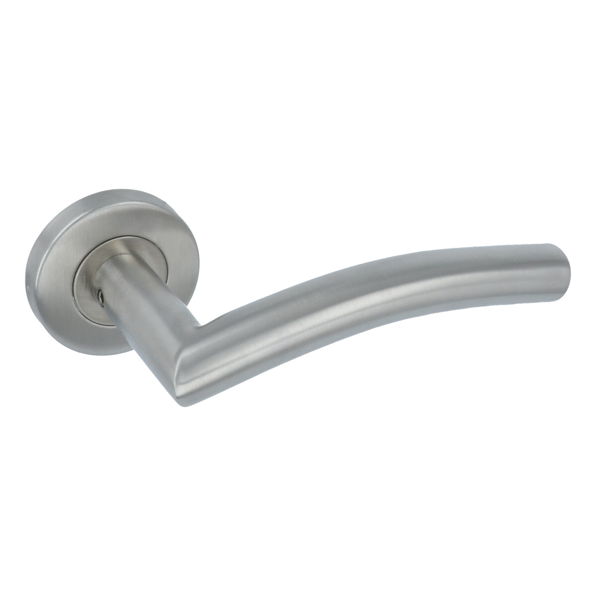 Deurklink Lisa/hoek 90° op rozet 500 serie rvs is geveerd op rozet met stalen onderconstructie zonder nokken.