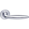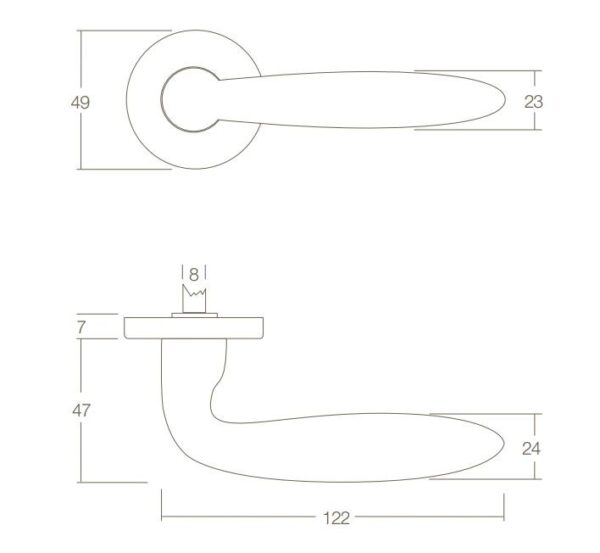 Deurklink Sigaar is een ronde deurklink die in het midden dikker is dan aan de uiteinden. Deze kruk op ronde rozet met veer is uitgevoerd in mat zwart en wordt per paar geleverd.