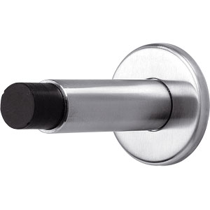 Deze deurstop beschermt enerzijds de deur en anderzijds de plint of muur tegen beschadigingen. Deze deurstopper wordt geproduceerd uit roestvast staal en wordt naderhand geborsteld, zodat de deurstop een matte uitstraling krijgt. Deze deurstop met rozet is geschikt voor montage op de wand.